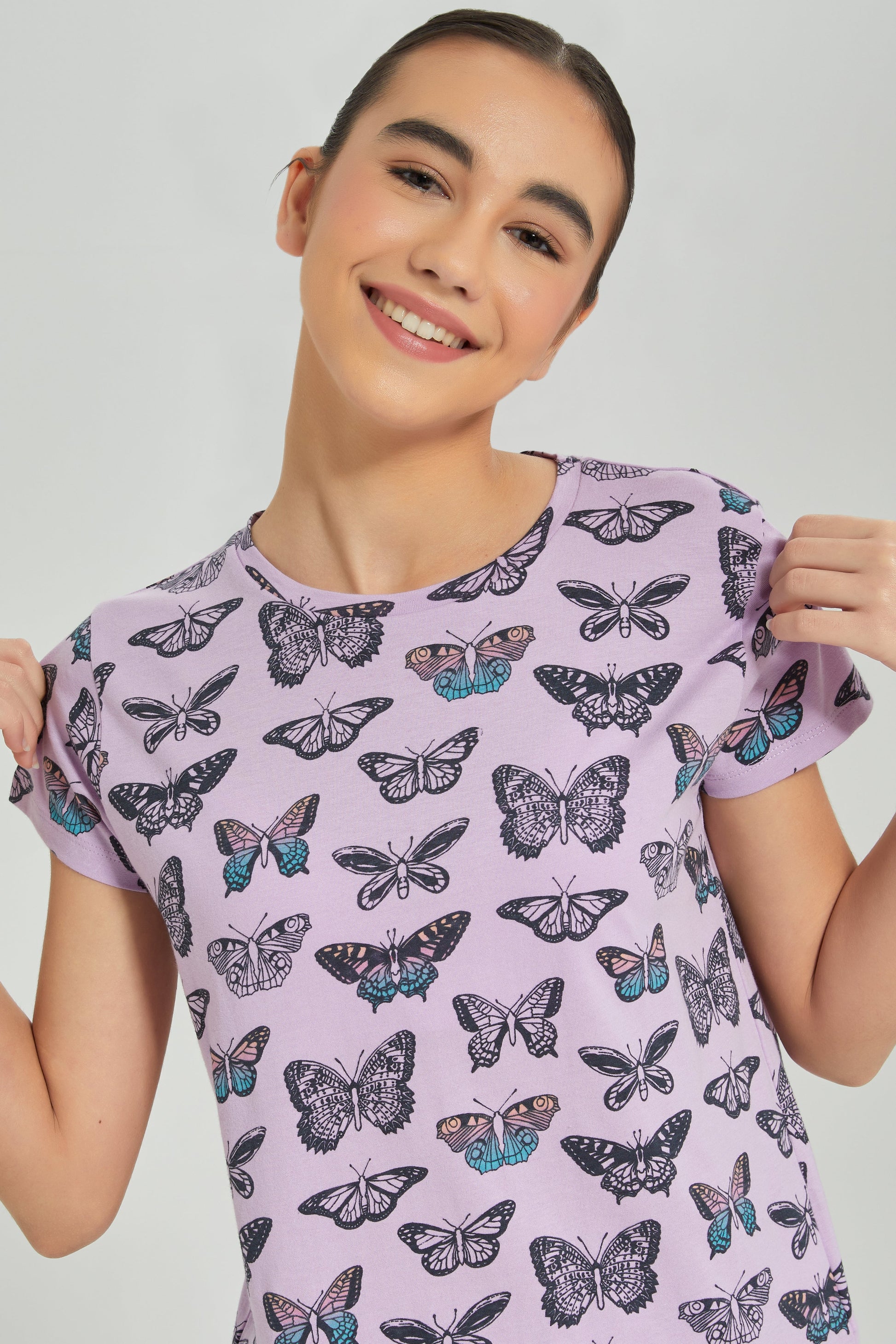 Senior Girls Purple Butterfly Print Pyjama Set (2 Piece)